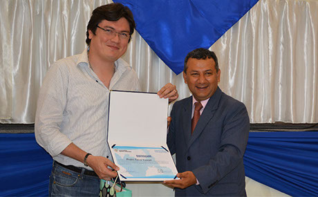 Capacitación en Modelación de Transporte (2014) junto al equipo de AIMSUN en la entrega de certificados a los participantes, en calidad de gerente de operaciones de Transportes Metropolitanos de Trujillo.
