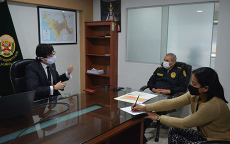 Reunión de coordinación con el General de la Tercera Macro Región Norte La Libertad de la Policía Nacional del Perú, dentro del proyecto Metodología de Articulación entre el Gobierno Regional La Libertad y los Gobiernos Locales para el Seguimiento de la Implementación del Proyecto "Creación de Banda Ancha para la Conectividad Integral y Desarrollo Social de La Región La Libertad".