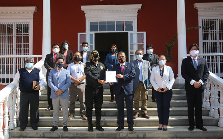 Municipalidad Distrital de Víctor Larco Herrera (2019) en compañía de su alcalde y el director de la División de Transporte, entregando las políticas públicas e instrumentos técnico-normativos en materia de fiscalización y regulación en vehículo menor, en calidad de consultor.